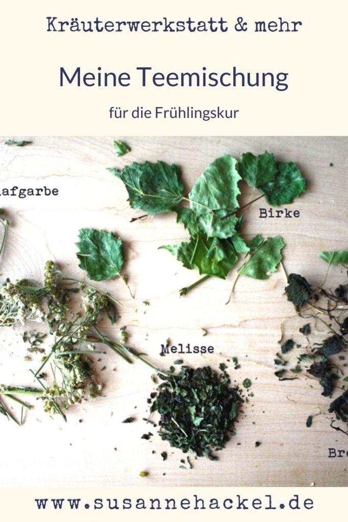 Für meine persönliche Frühlingskur mische ich mir jedes Jahr eine spezielle Teemischung aus getrockneten Heilpflanzen und Kräutern zusammen. Diese unterstützt die Ausscheidung von überflüssigen Stoffwechselprodukten und bringt mich wieder in Schwung. Meine Teemischung enthält: